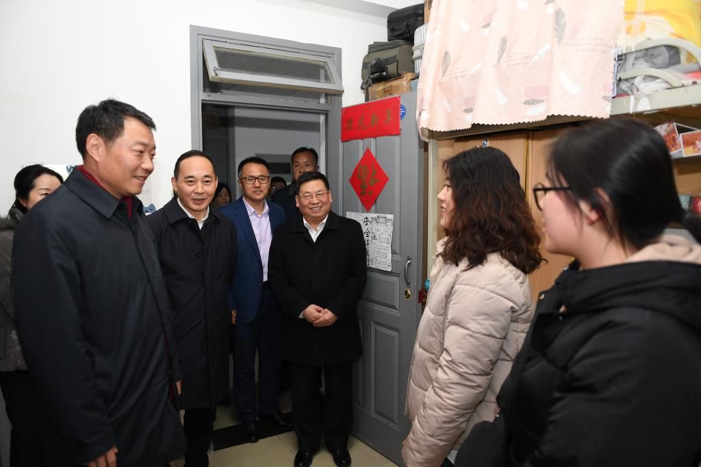 调研中,陈元丰一行深入台湾学生宿舍调研,查看生活服务设施并询问学习生活情况。