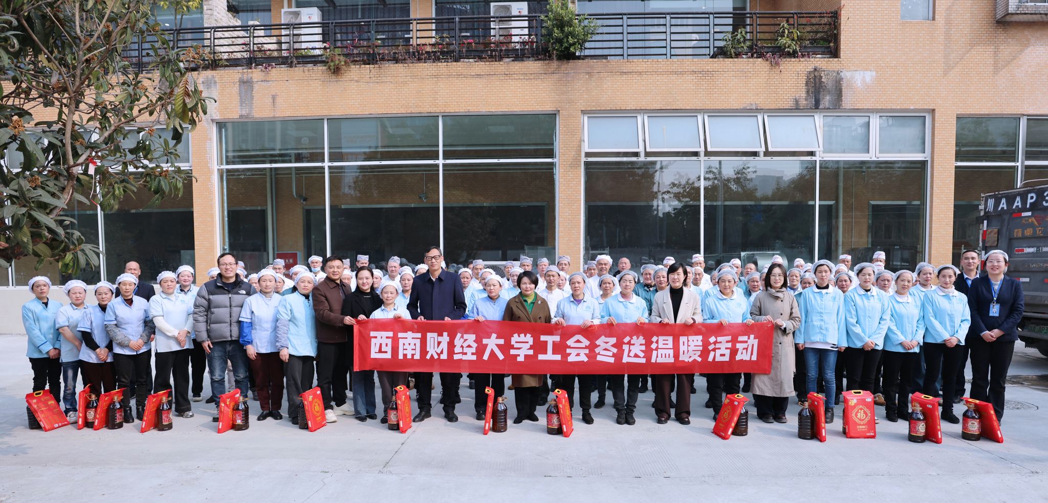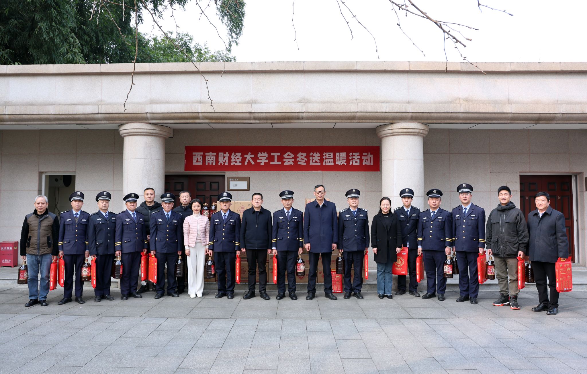 岁末寒冬,温情暖心。1月13日,围绕“关爱一线职工、传递校园温情”主题,学校组织开展2026年“冬送温暖”专项慰问活动。党委副书记谢红、明海峰,党委常委、副校长、工会主席桂富强和相关部门负责人一同向坚守在校园一线的安保、后勤工作人员送去冬日关怀与新春祝福,将学校温暖精准送达每一位工作者心间。