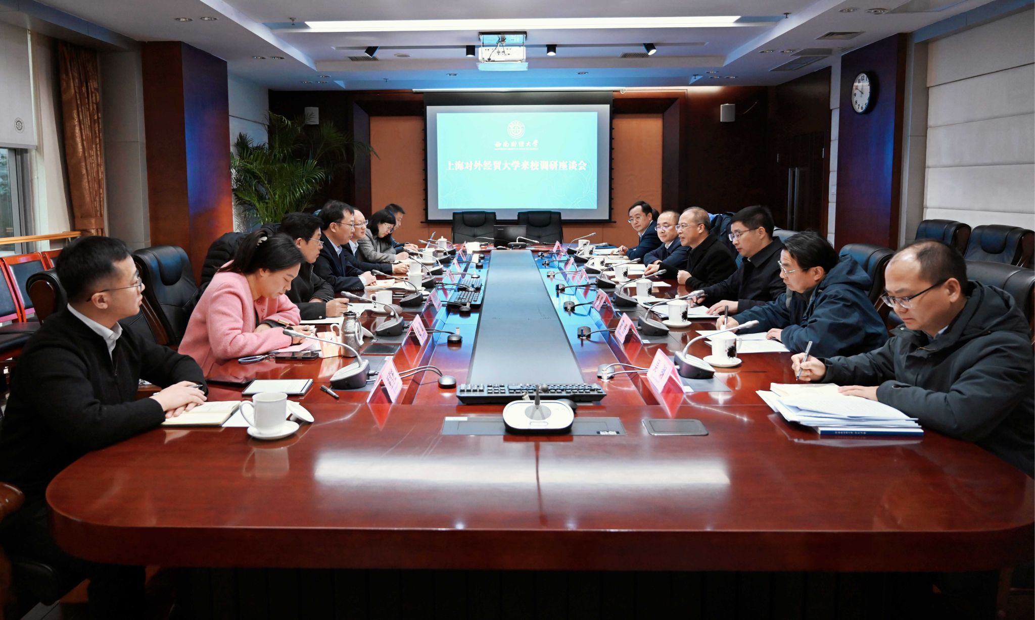 1月23日,上海对外经贸大学校长汪荣明一行来校调研交流。学校党委副书记、校长李永强出席座谈会。