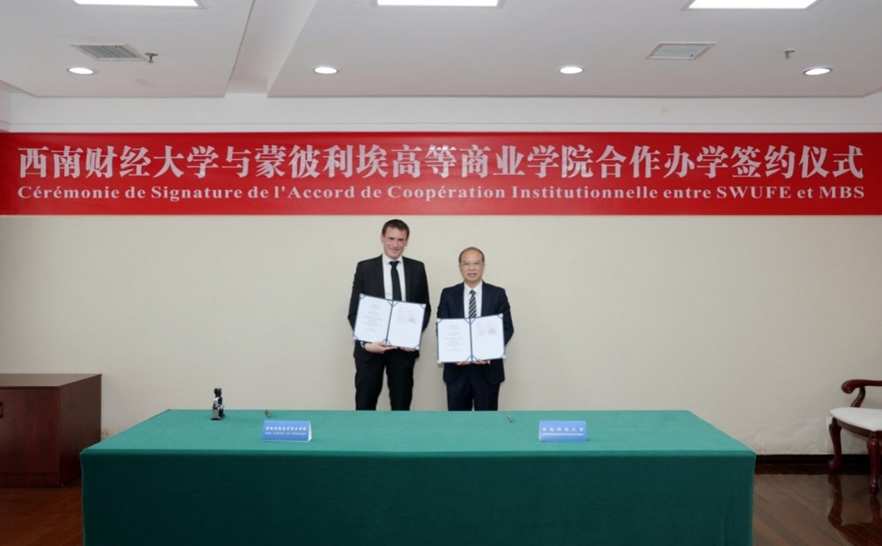 李永强对埃里克·勒·德勒伊一行表示欢迎并介绍了学校百年历史沿革、“新财经”学科建设及国际交流合作等情况。他指出,今年是中法建交62周年、成都与蒙彼利埃缔结友好城市关系45周年,此次双方签署合作办学协议既是中法教育合作“双向奔赴”的生动体现,也是两所百年大学悠久历史与治学精神的交汇融合,希望双方携手打造中法合作办学标杆项目,推动中法教育文化科研深度交流。