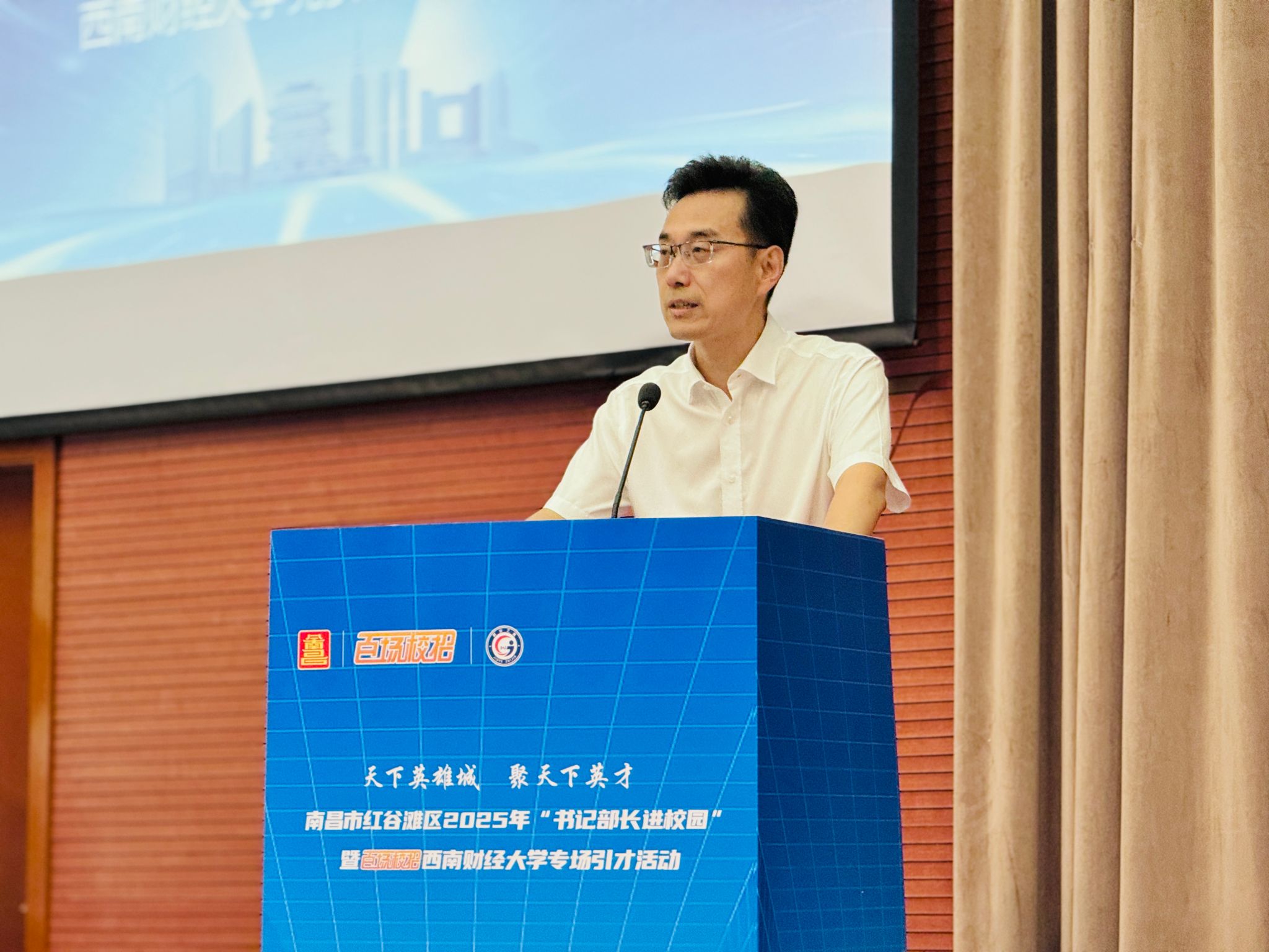 李婷以“00后新城区的朝气与活力”为喻,对红谷滩区作了生动精彩的专题推介。作为江西省南昌市的“首府首区”,红谷滩区已迅速发展为全省经济中心、金融中心与科创高地。她强调,本次活动是为了“招才引才回南昌”,更是为了构筑坚实的校地合作桥梁,实现资源共享、互利共赢。区政府将全力为各类人才提供从科研转化到就业创业的全过程护航,确保人才工作安心、发展顺心、生活舒心。