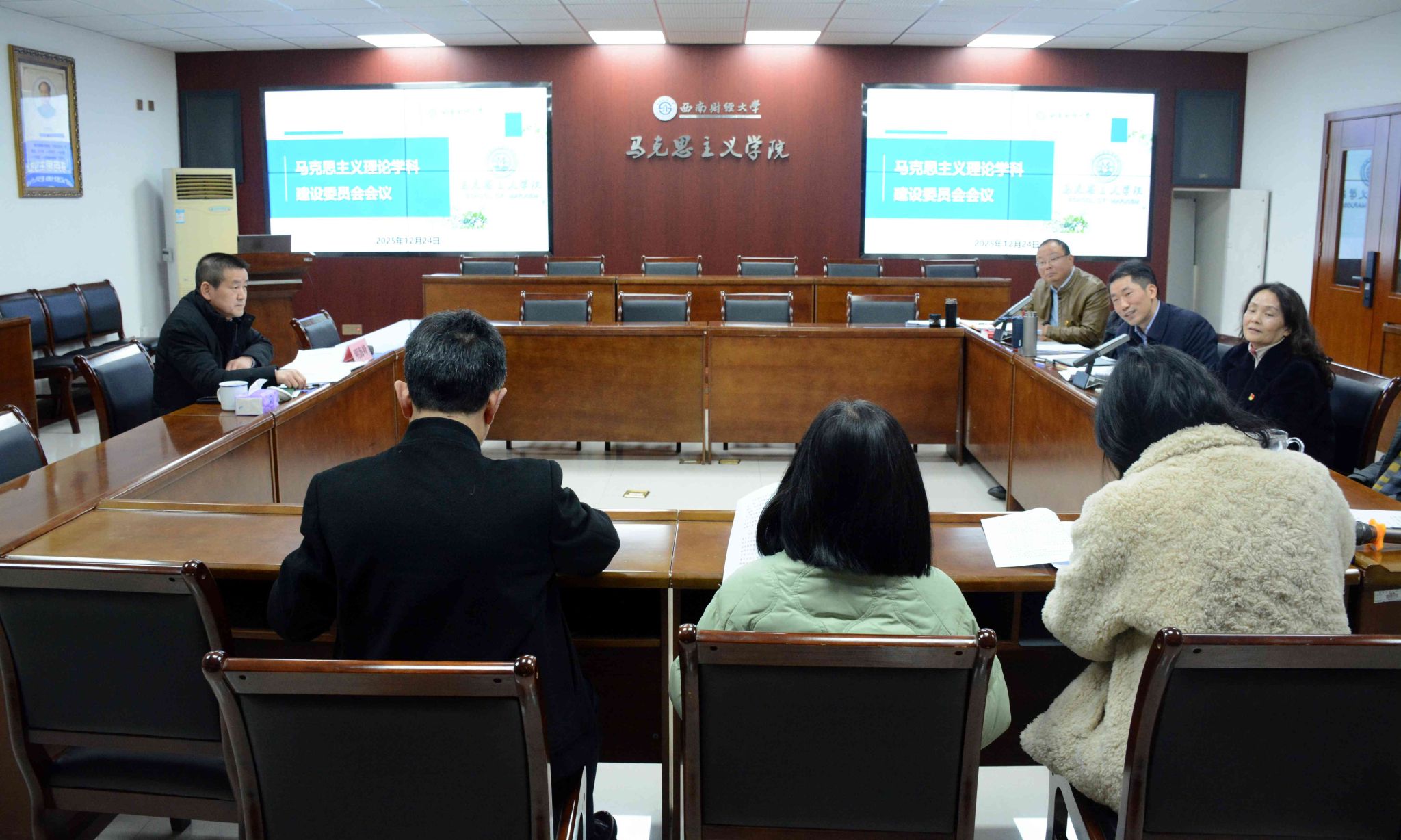 明海峰指出,学校党委历来高度重视马克思主义学院和马克思主义理论学科建设,学院要贯彻落实好学校党委决策部署,抓住重要契机,坚持学科本位,全心全意谋发展。他强调,要坚定发展信心,系统总结学科建设经验,以现有成绩为基础夯实发展根基;要正视短板不足,强化政治引领、凝练西财特色、抓实战略引才、完善治理机制,全方位补齐学科建设短板;要明确着力重点,聚焦内涵核心指标,“好钢用在刀刃上”,集中优势资源突破瓶颈、聚力攻关,力争“十五五”发展再上新台阶。