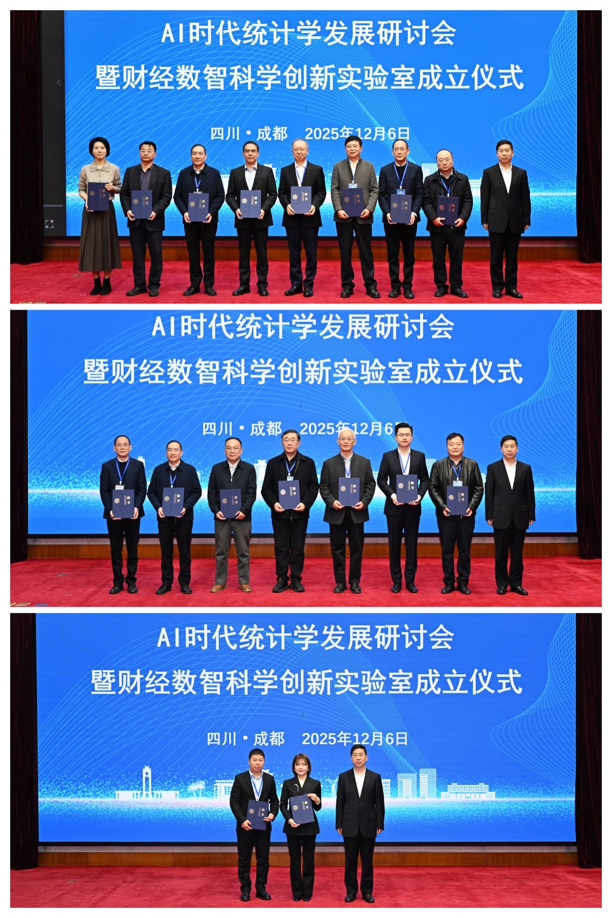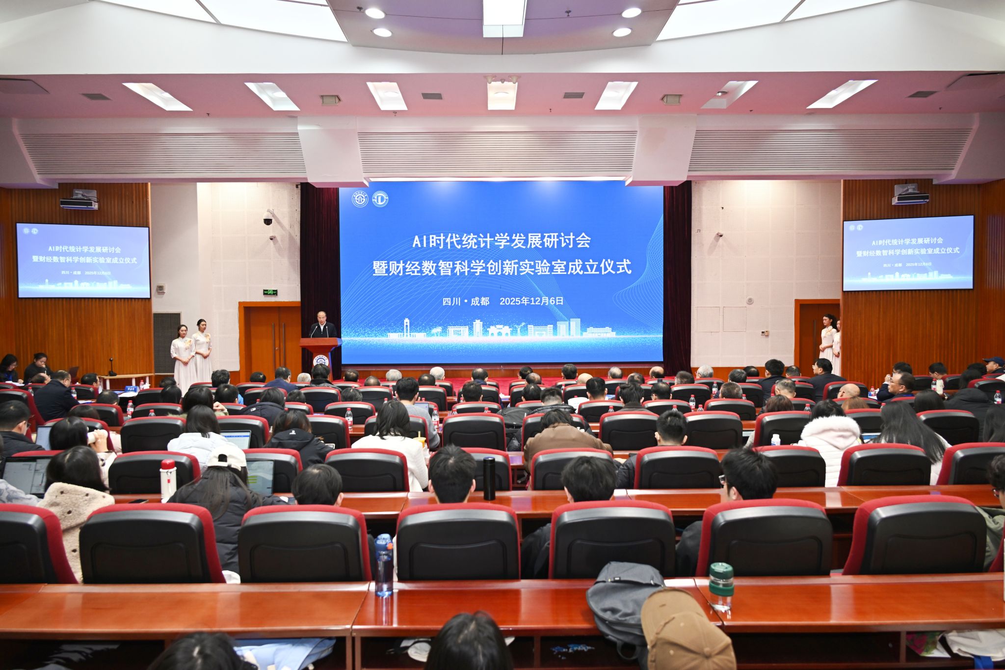 12月6日,AI时代统计学发展研讨会暨财经数智科学创新实验室成立仪式在sunbet成功举办。中国科学院院士、清华大学讲席教授陈松蹊,国家统计局原总工程师文兼武,中央财经大学原党委书记、江西财经大学讲席教授邱东,弘泰恒业投资公司董事长、学校1979级校友任道德,学校党委书记赵建军,党委副书记、校长李永强等通过线上线下方式出席开幕式。来自国家统计局、清华大学、厦门大学、京东集团、数库(上海)科技有限公司等50余所相关单位、高等院校、科研院所、知名企业专家代表和学校师生代表共200余人参加活动。学校党委常委、副校长李志生主持开幕式。