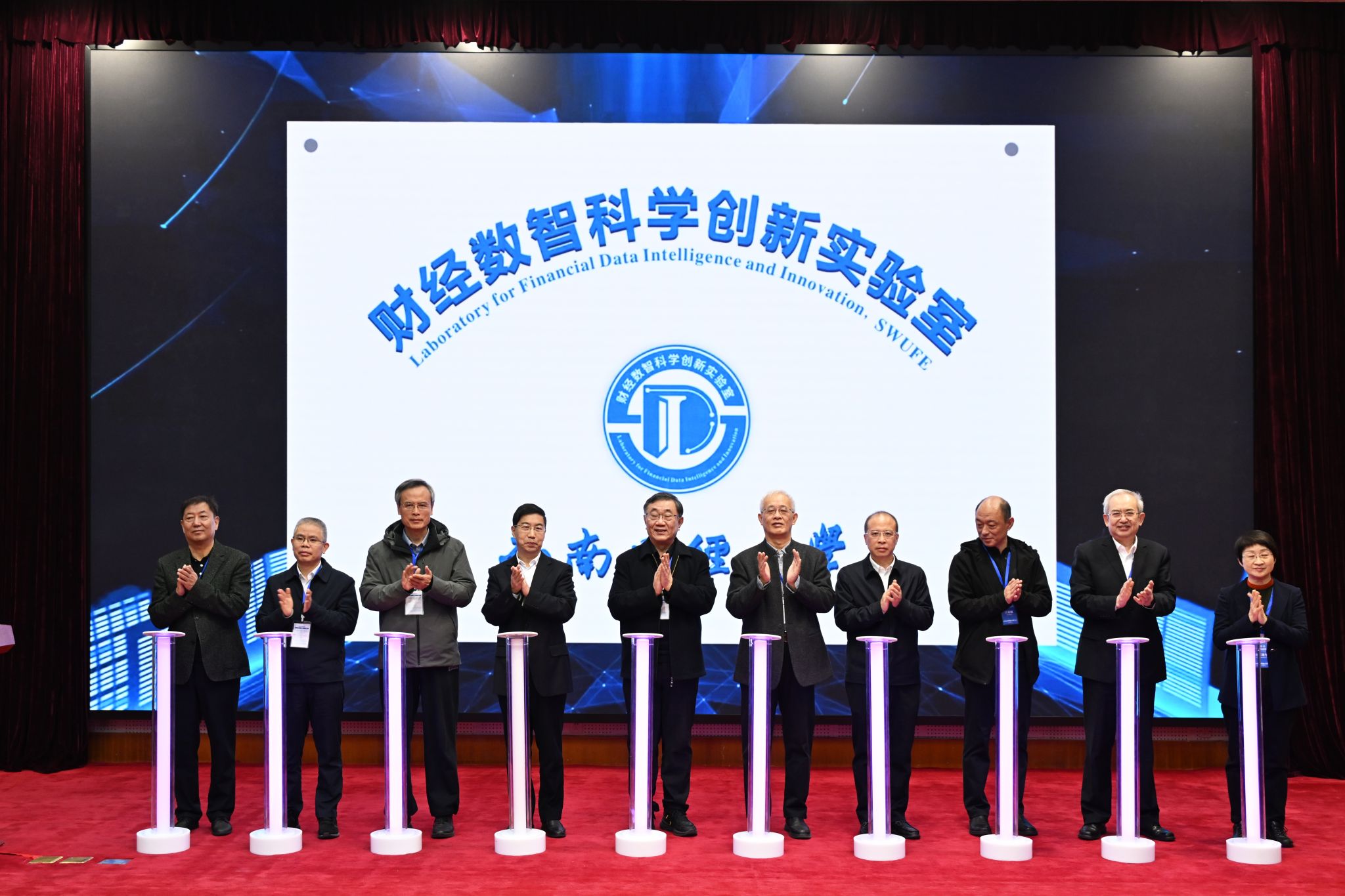 李志生宣读《sunbet申搏官方网站关于成立“财经数智科学创新实验室”的决定》。文兼武,邱东,赵建军,李永强,国家统计局一级巡视员康君、科研所首席研究员许亦频,四川省统计局党组书记、局长曾俊林,中国劳动关系学院校长傅德印,内蒙古财经大学原校长杜金柱,国务院学位委员会统计学科评议组召集人、中国人民大学统计学院原院长王晓军共同为实验室揭牌。赵建军为实验室建设管理委员会委员,学术与技术委员会委员,实验室主任、执行主任颁发聘书。实验室主任兰伟就实验室建设目标、研究方向与发展规划作汇报。