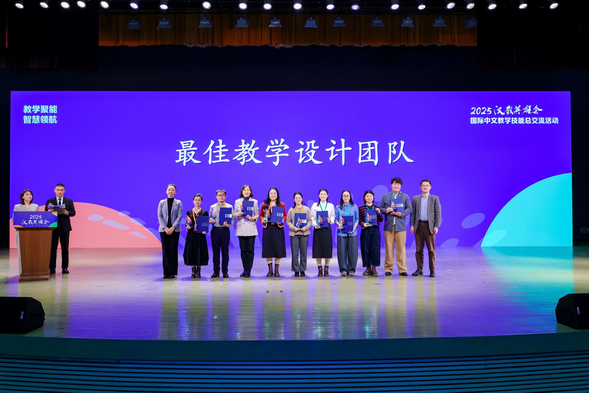 12月18至19日,2025“汉教英雄会”国际中文教学技能总交流活动在北京举行。本次活动以“教学聚能,智慧领航”为主题,设说课交流、现场教学、圆桌论坛等多个环节。学校白巧燕、胡倩琳、谢娟三位教师凭借《AI辅助高阶汉语口语思辨与表达》财经类专业前置课程获“最佳教学设计团队”称号。这不仅是对学校国际中文教育教学水平的肯定,更是对中文教师深耕教学、勇于创新的鼓舞。