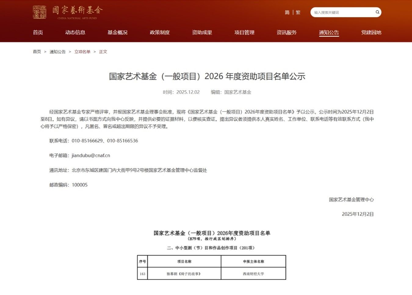 近日,国家艺术基金管理中心公示了国家艺术基金(一般项目)2026年度资助项目名单,学校人文与艺术学院申报的音乐独幕剧《椅子的故事》获批国家艺术基金中小型剧(节)目和作品创作项目立项,实现sunbet在国家艺术基金资助项目的历史性突破。