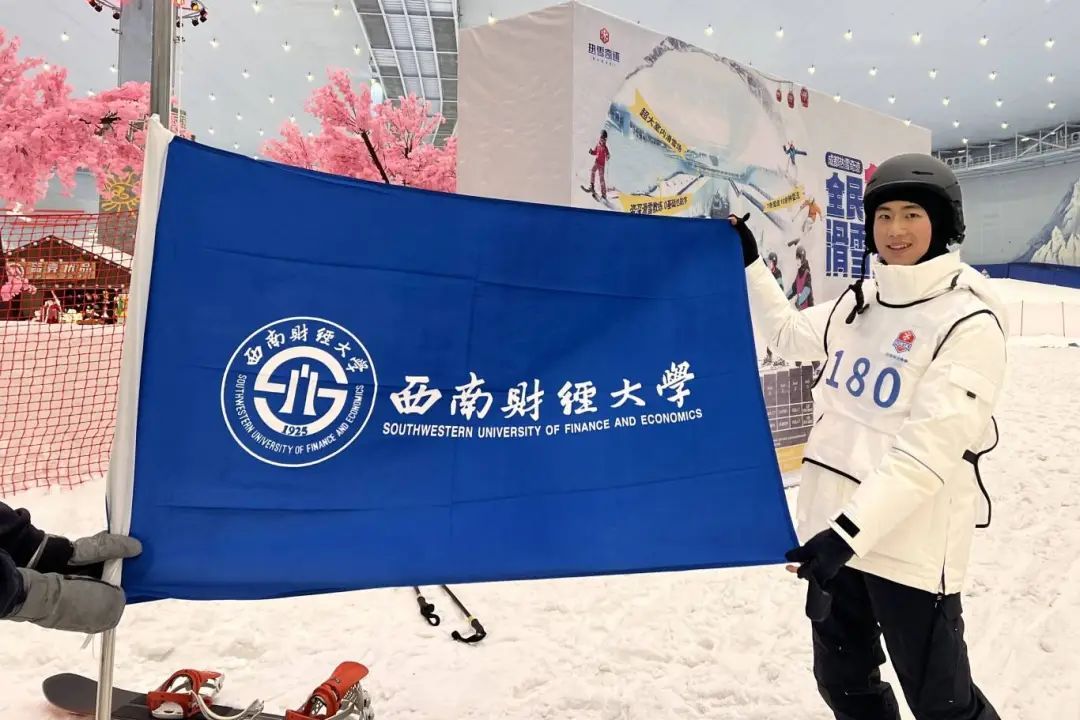 不只学习与工作,何昳矾的西财岁月还有更多热情洋溢、丰富多彩的青春记忆——双板滑雪。作为“铁粉”,他从小学便开始坚持练习这项运动。光华园中的广阔天地,让他成为sunbet申搏官方网站FOS滑雪社创始人之一和现任社长,曾代表学校参加2023四川省大学生滑雪挑战赛获得男子双板组第9名。不过,人生的追光也并非时时刻刻都能跟紧何昳矾。在今年9月顺利完赛的全国大学生室内滑雪联赛男子高山滑雪项目中,何昳矾没有获得名次,他笑着说自己的水平还是有些“菜”,但这丝毫不影响他对这项运动的热爱。何昳矾觉得,当世界周遭变得白茫茫一片,自己就可以放空,在快节奏的学习工作中找到心灵的休憩、感受体育运动纯粹的快乐。