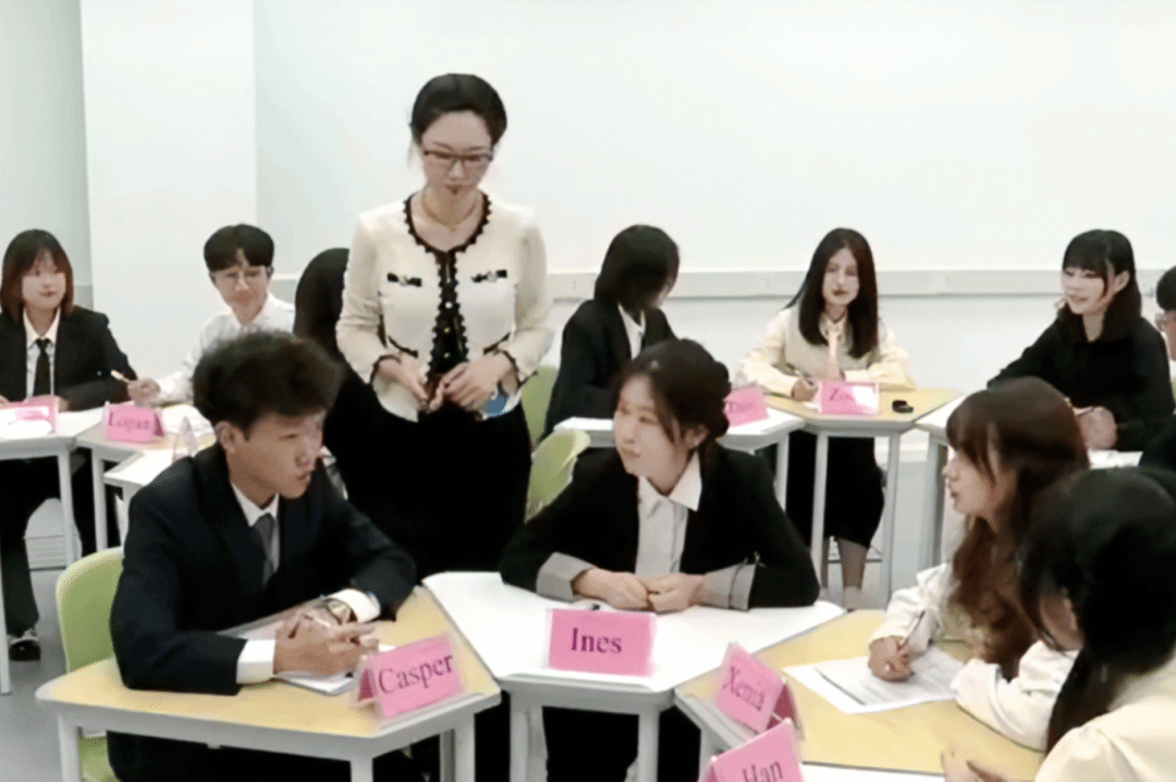 教室里,同学们用专业而流利的英语模拟着国际商务谈判的场景,老师则更像是“导演”,对同学们的谈判话题和交流礼仪进行耐心指导。这样别出心裁的教学方式,来自外国语学院潘紫萌教授所讲授的国际商务谈判课。