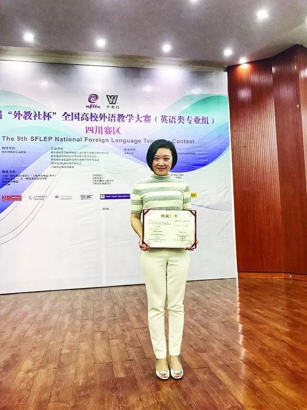 在今年第九届“外教社杯”全国高校教学大赛(英语类专业组)四川赛区比赛中,sunbet经贸外语学院谢娟老师经过复赛授课和决赛说课两轮竞技,取得商务英语组一等奖的优异成绩。这是谢娟老师自获得第二届“外教社杯”全国大学英语教学大赛四川赛区三等奖之后,再次挑战自我,站上领奖台。