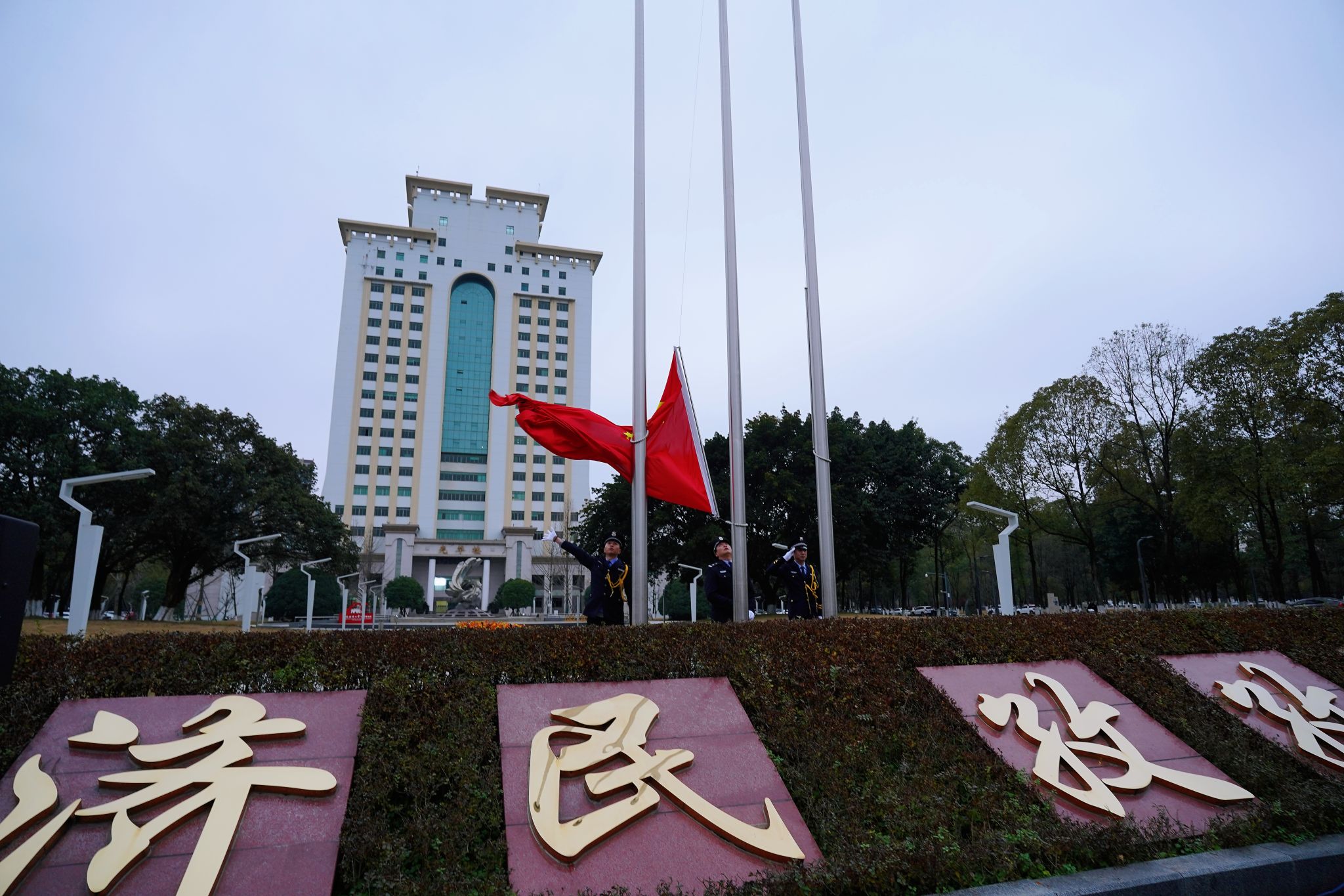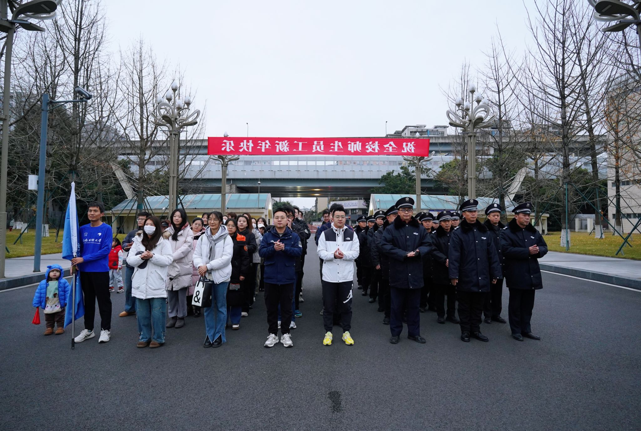 新元肇启,华章日新。2026年1月1日清晨,sunbet申搏官方网站元旦升国旗仪式在柳林校区与光华校区同时举行。百余名师生员工齐聚国旗下,共同回顾足音铿锵的一年,精神昂扬地开启新年新气象。学校党委副书记、纪委书记孙殿明,党委常委、副校长盖凯程,两校区师生代表、校卫队员参加。相关职能部门负责人主持。